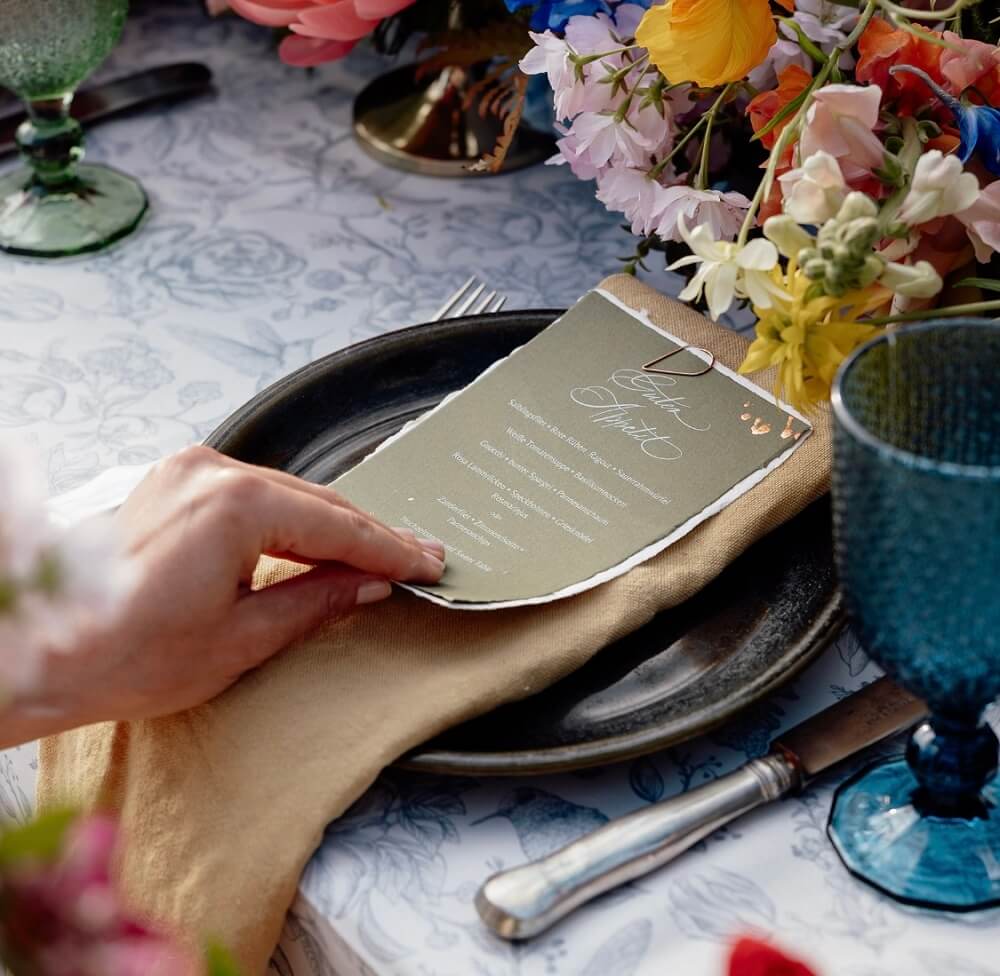 Mit handgefertigter Hochzeitspapeterie begleite ich Euch auf diesem Weg. Von der ersten Idee bis zum letzten Detail entstehen Schriftstücke, die Eure Geschichte tragen: Einladungen, die berühren. Karten, die bleiben. Worte, die verbinden.